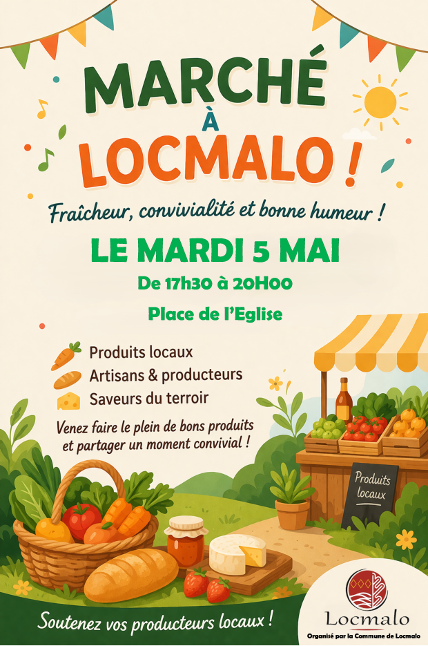 Mardi 5 mai 2026, de 17h30 à 20h, profitez du premier marché de l’année avec producteurs et artisans locaux.