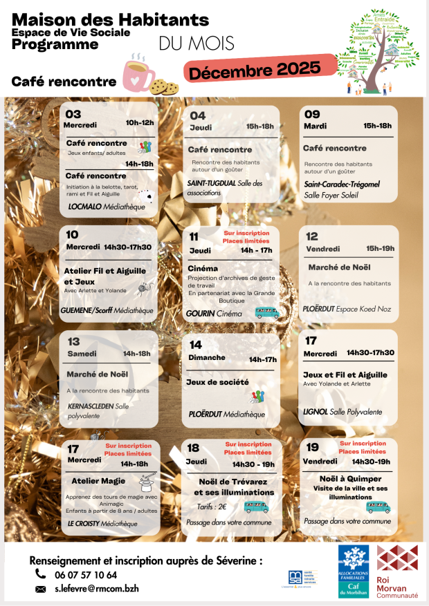 • 09/12 – Saint-Caradec-Trégomel : Café-rencontre au Foyer Soleil